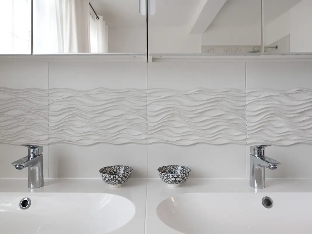 Dampfbad, Bordüren und Lisenen aus Handkeramik
